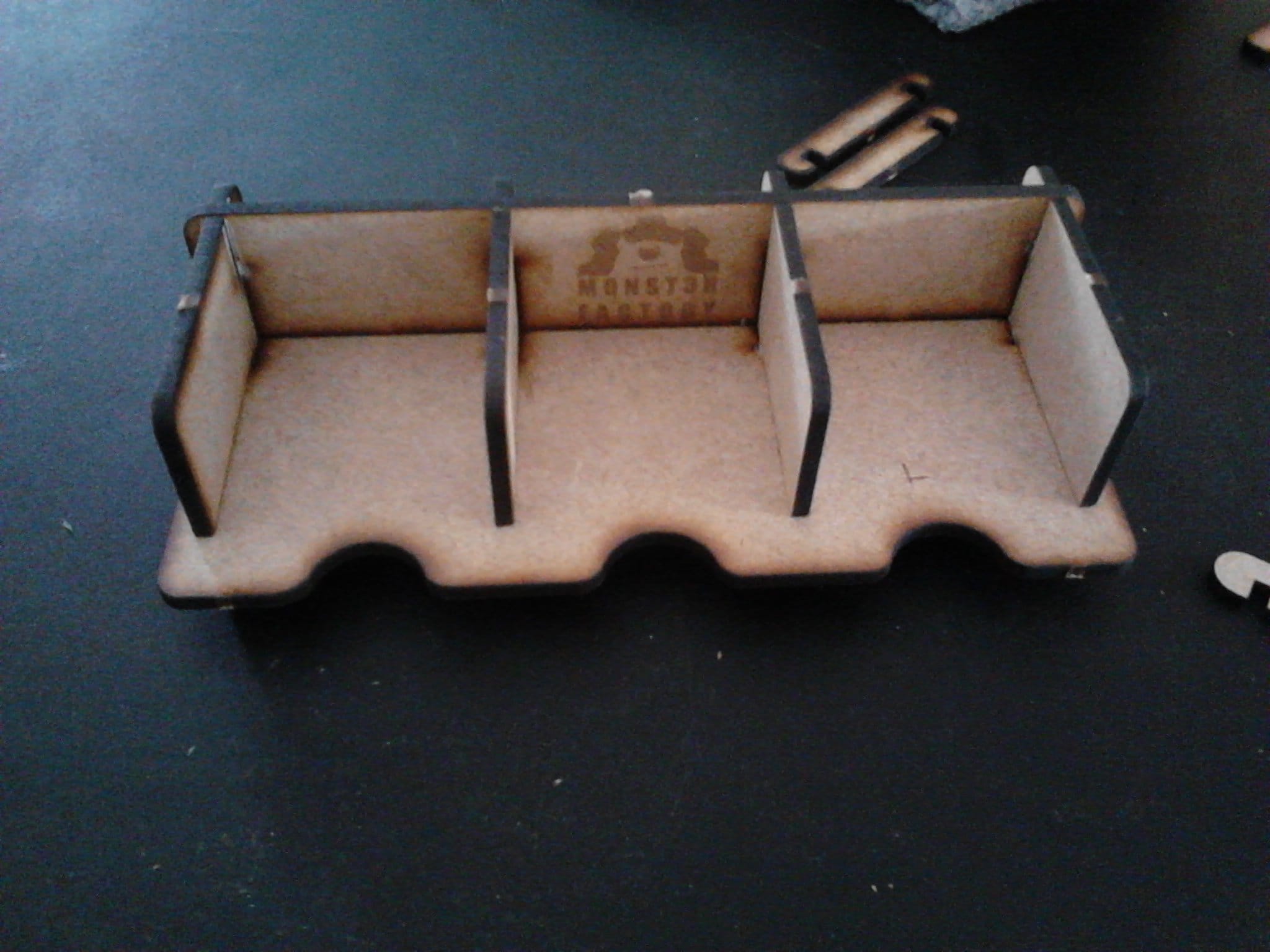 A Monst3r Factory lançou três produtos bastante úteis e interessantes, a Bandeja de Dados, Torre de Dados e o Organizador para Cartas. Todos os produtos são feitos em MDF, sendo bastante resistentes, embora sejam leves.